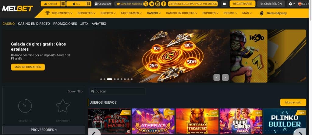 Si prefieres probar otras secciones además de las apuestas deportivas, también puedes utilizar el código promocional Melbet para activar el paquete de bienvenida del casino y fast games. Esta promoción está pensada para quienes quieren explorar tragamonedas, juegos de mesa y otros títulos disponibles dentro del catálogo de la plataforma.