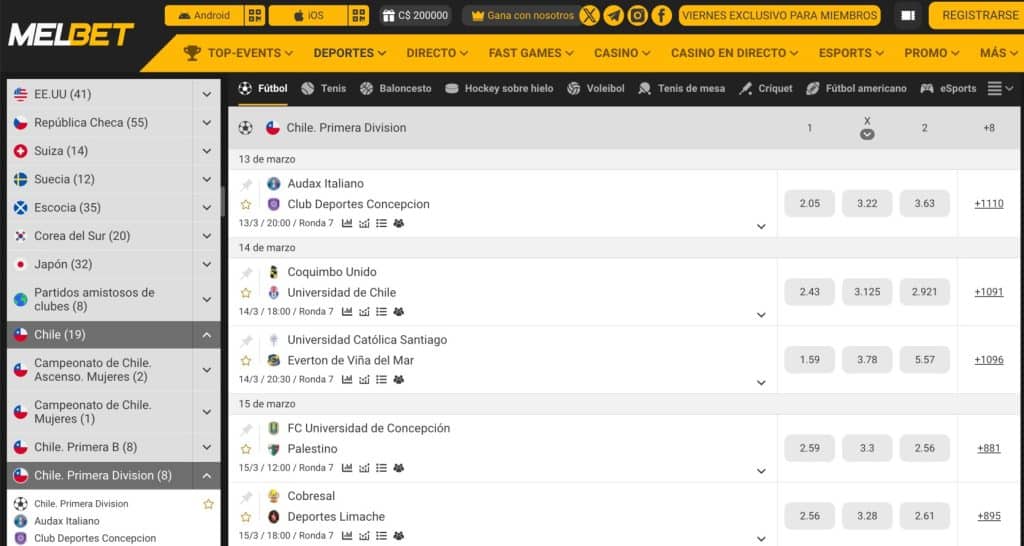Si te registras usando el código promocional Melbet, puedes acceder al bono de bienvenida para apuestas deportivas. La oferta actual permite recibir hasta un 250% del primer depósito, con un tope de $300.000 CLP.